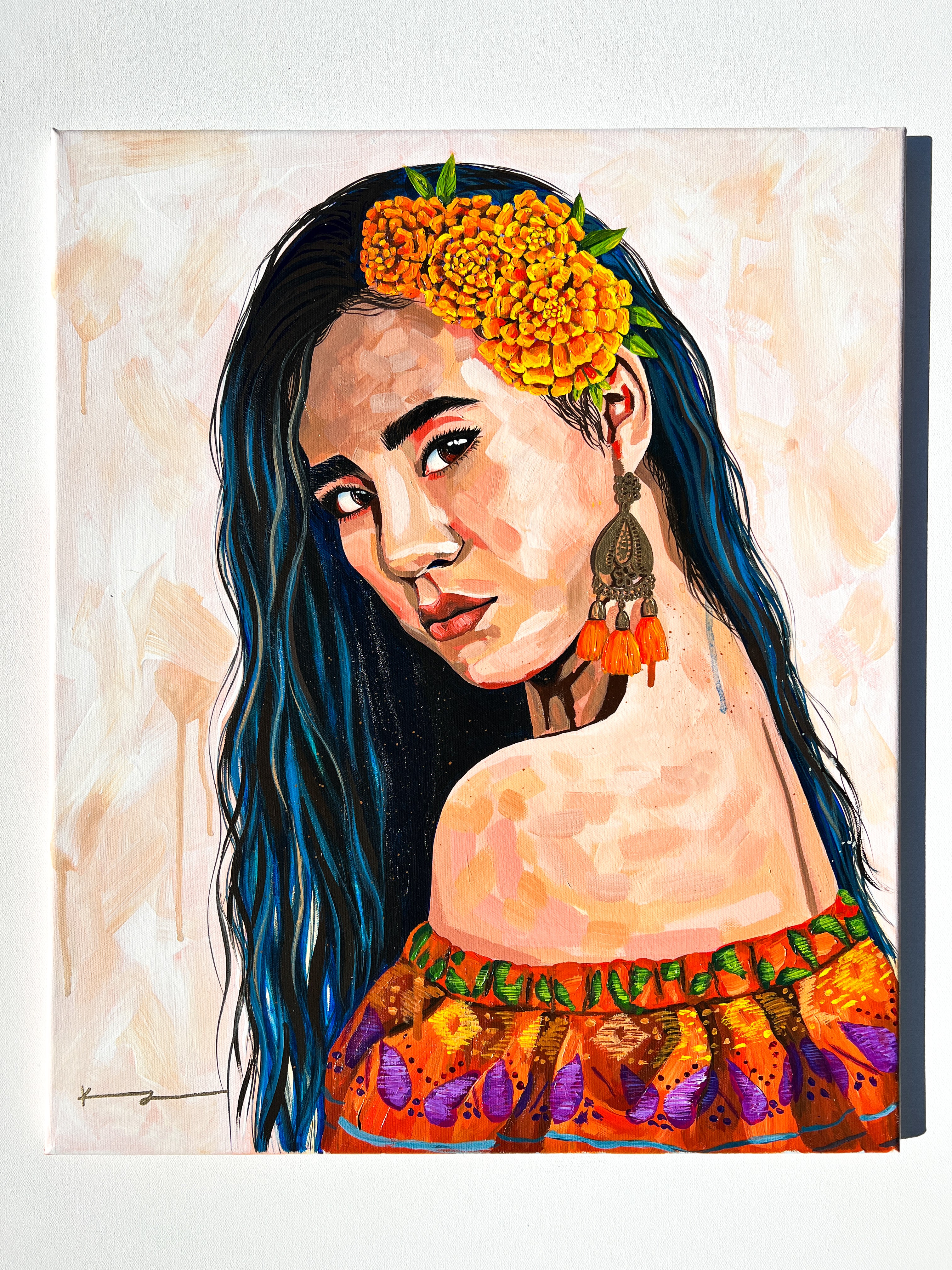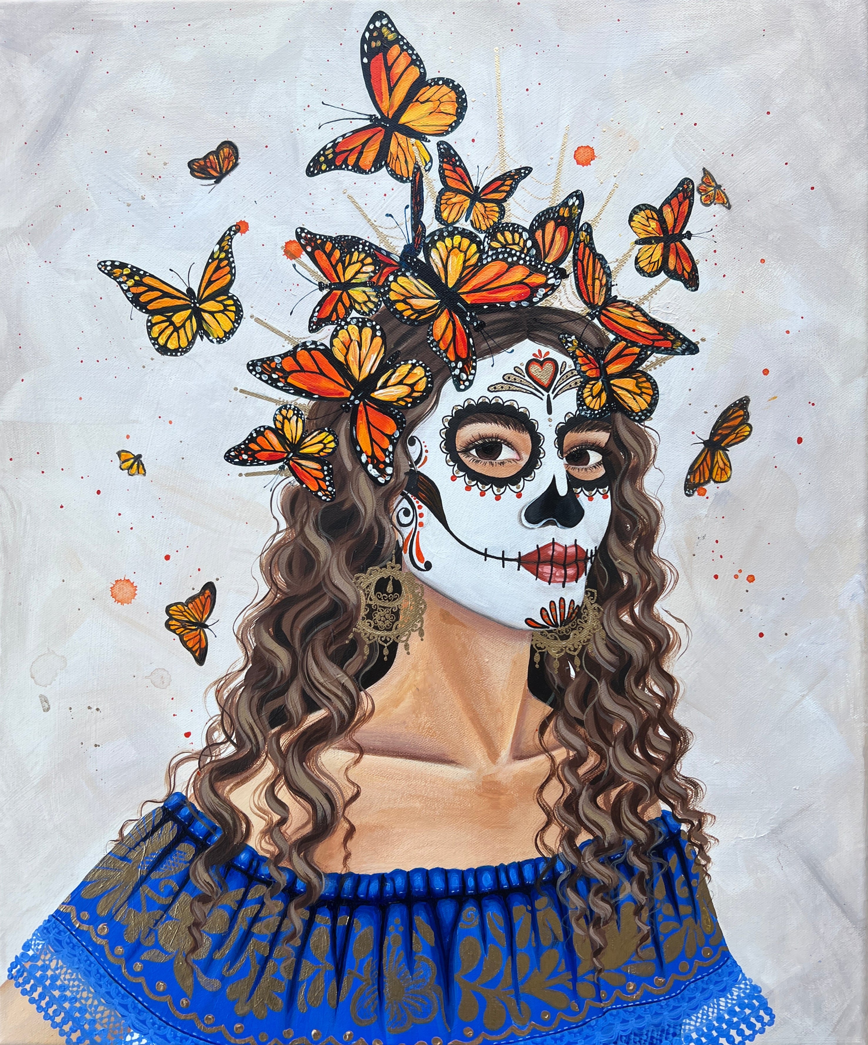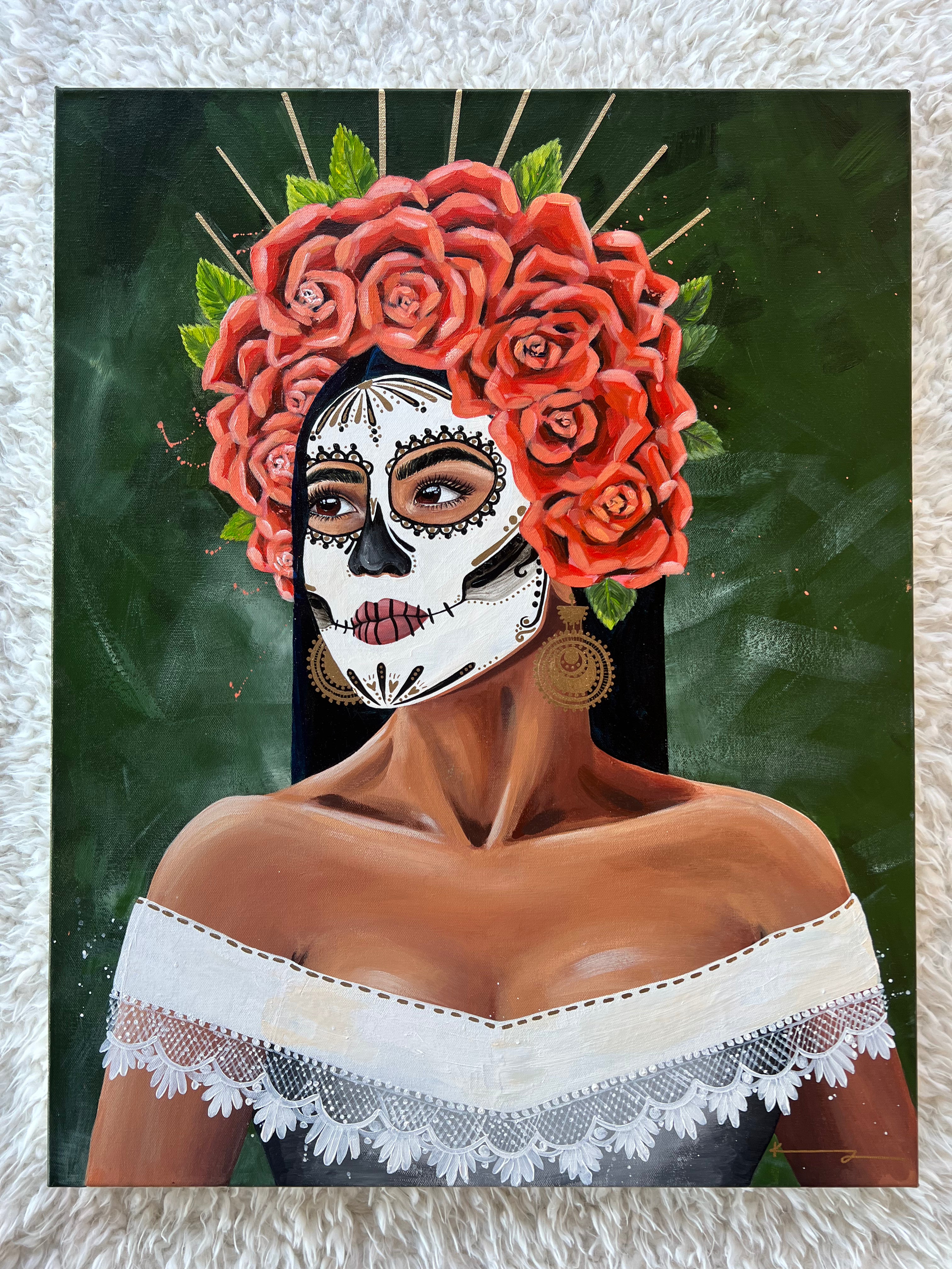 A watercolor on canvas series focusing on Calaveras. Emphasis on color and movement throughout each piece is achieved by manipulating the colors to bleed into one another. These pieces were heavily influenced by Mexican elements and symbols within the culture.