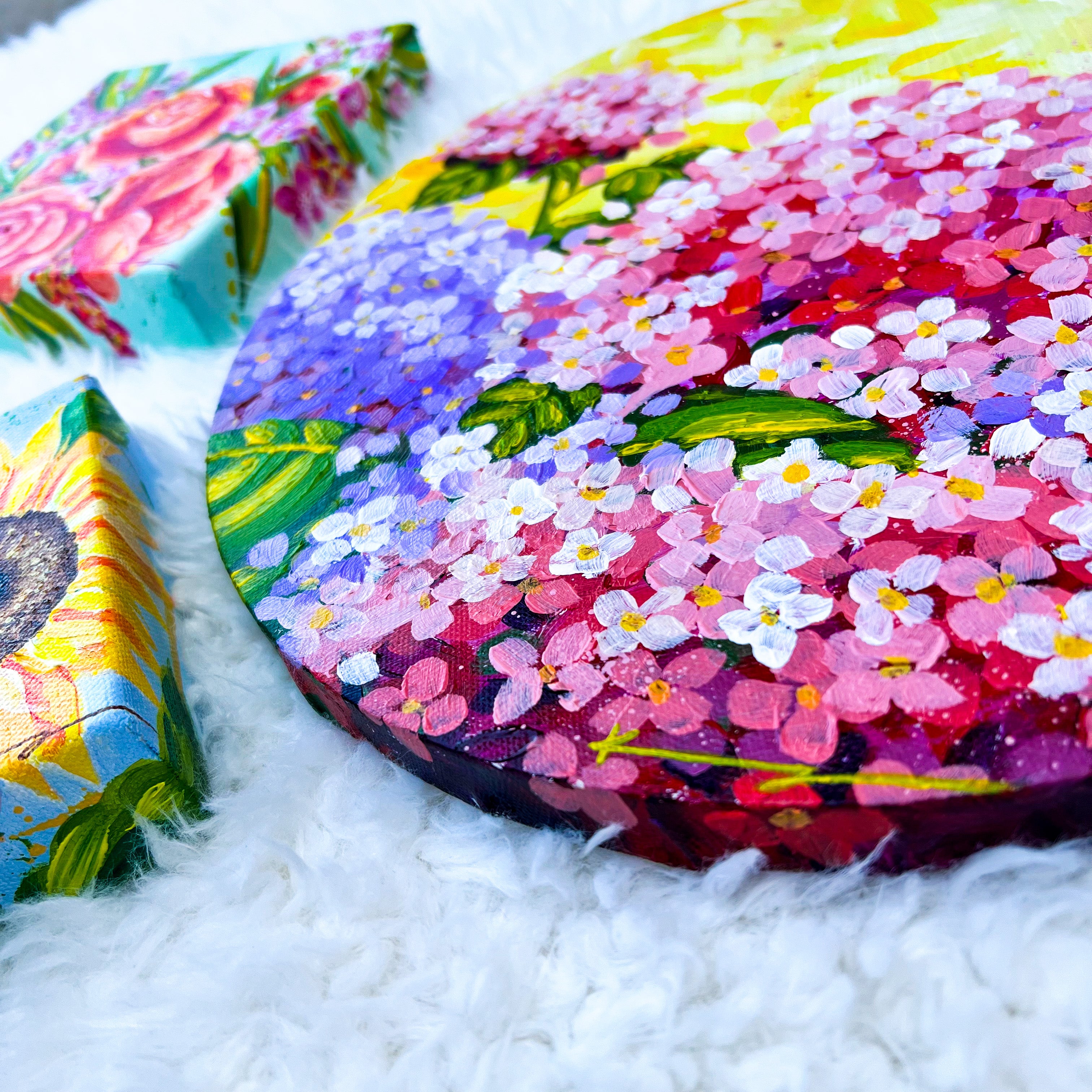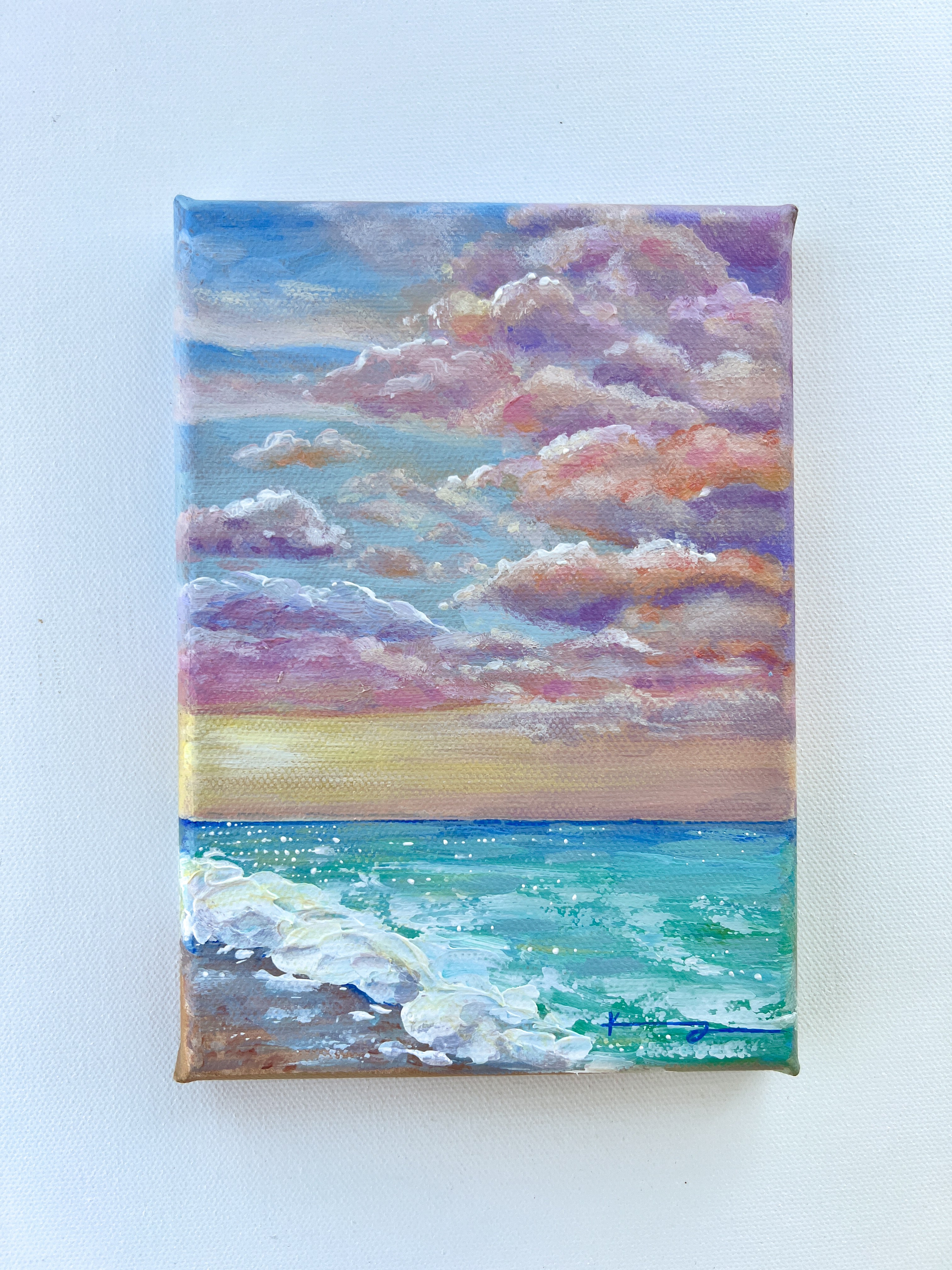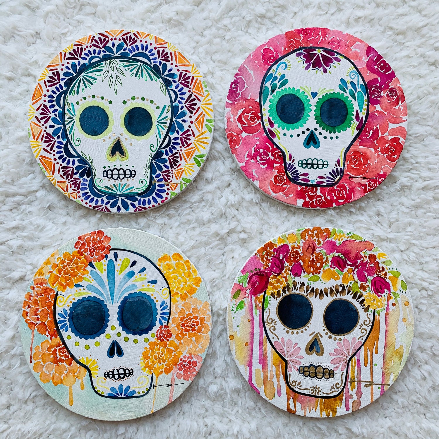 A watercolor on canvas series focusing on Calaveras. Emphasis on color and movement throughout each piece is achieved by manipulating the colors to bleed into one another. These pieces were heavily influenced by Mexican elements and symbols within the culture.